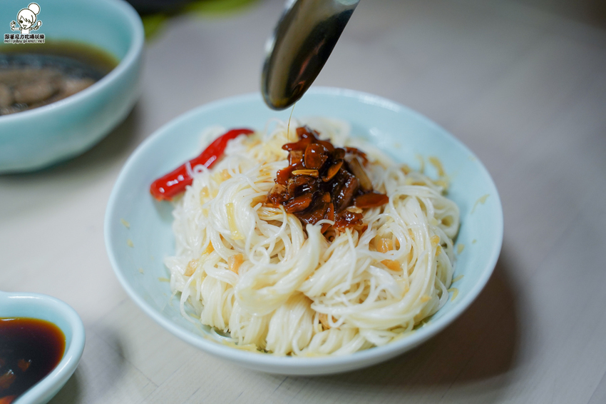 獨門特製的蒜頭醬油很更夠味,可以搭配麵線、青菜