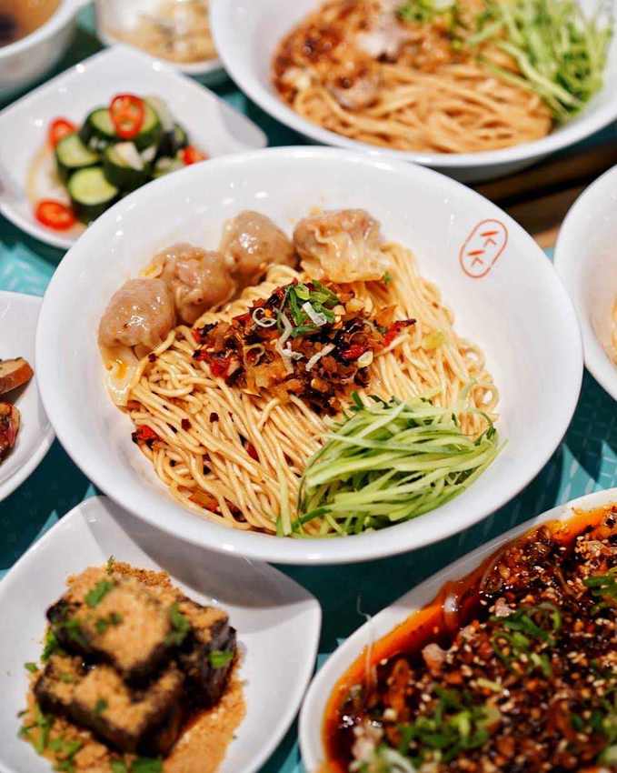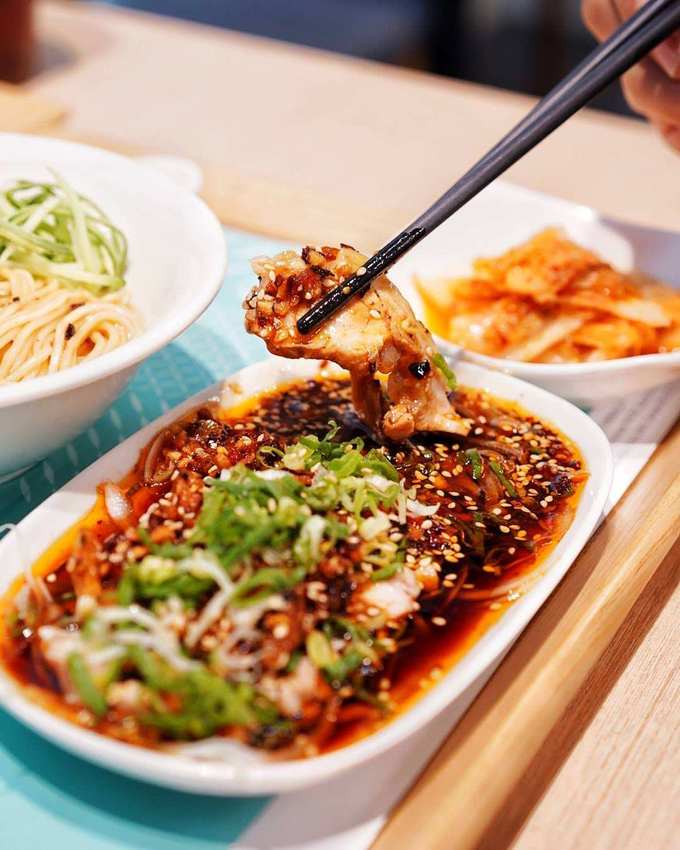 再來是店裡招牌鮮蝦抄手燃麵,本身帶有一點辣度, 第一口就能感受到香麻辣的味蕾衝擊,還有四顆內餡飽滿的鮮蝦抄手,麵條是使用四川宜賓燃麵,口感很有Q勁卻又不軟爛,對於嗜辣的朋友肯定會一口接一口啊🤤