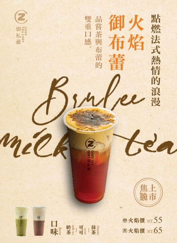 《火焰御布蕾-奶茶/可可/抹茶 $55中杯/ $65大杯》、