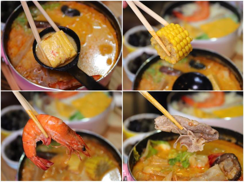▼《珍珠御火鍋-麻奶鍋》的鍋料也很豐富,有大量的蔬菜、玉米、菇類、火鍋料、肉、蝦…等~跟一般小火鍋不同的是,他們家的鍋料有特別挑選食材,連媲美天使紅蝦的 巴西大蝦、大干貝,都在這一鍋裡喔!