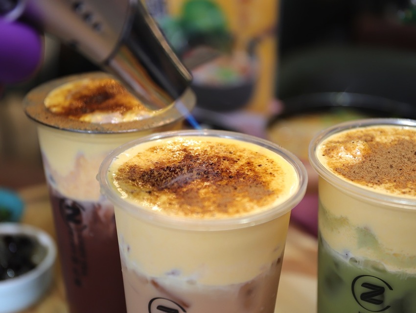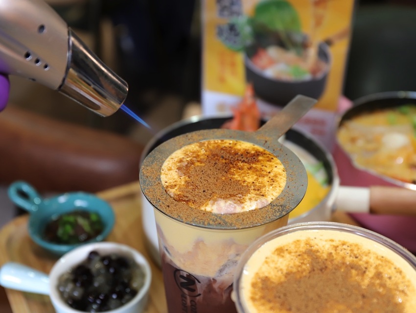 除了加了珍珠的牛奶火鍋以外,店家還推出了用“喝”的烤布蕾~名字很酷,稱為:《火焰御布蕾》,共有三種口味:奶茶、抹茶、可可口味,都很好喝喔!!! 重點是,飲料的最上面一層,竟然是焦糖布丁,香甜好喝,口感超特別!(๑´ڡ`๑)
