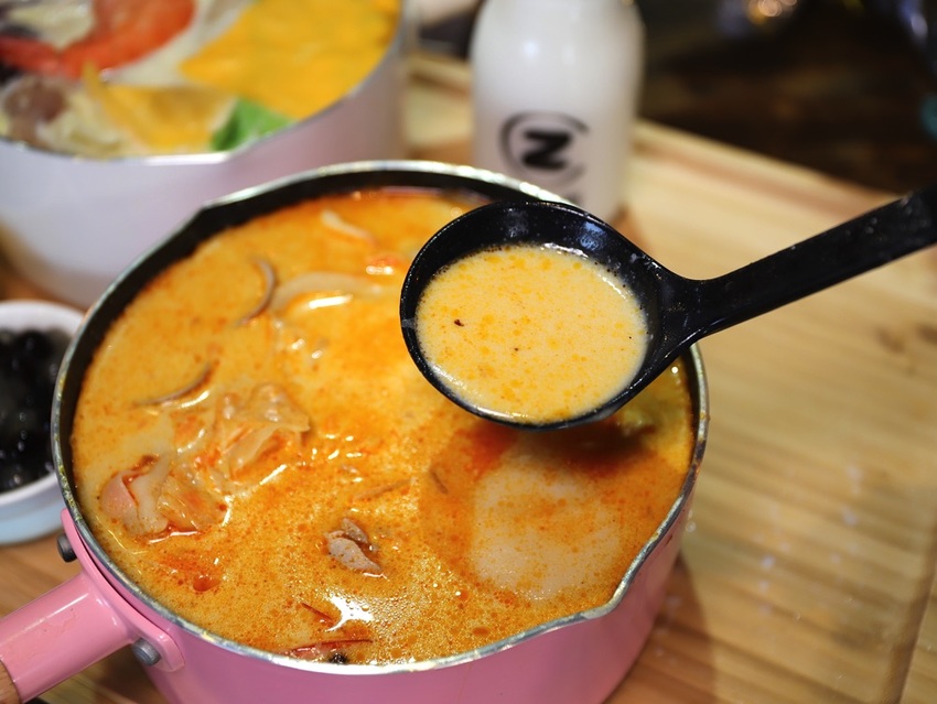 (所以不吃辣的人,記得整瓶鮮奶倒進去,就能盡情品嚐麻奶鍋的濃醇香&微微辣韻囉!)