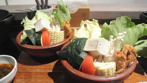蔬菜盤是新鮮的蔬菜,無人工製成的火鍋料