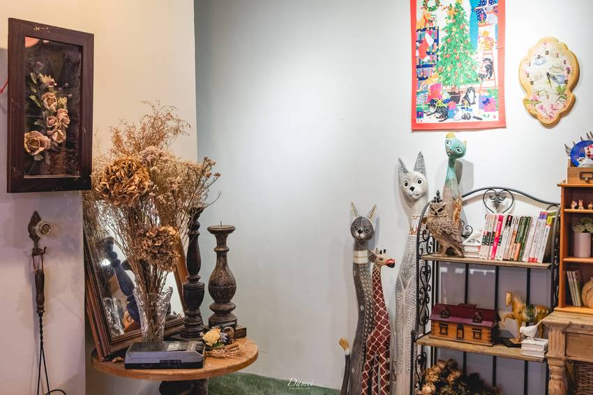 來吃吃飯多留了好幾處小空間,書籍、牆上壁畫、乾燥花、黑膠唱片等等,物品的年代可能不是同個年代,卻意外合拍。