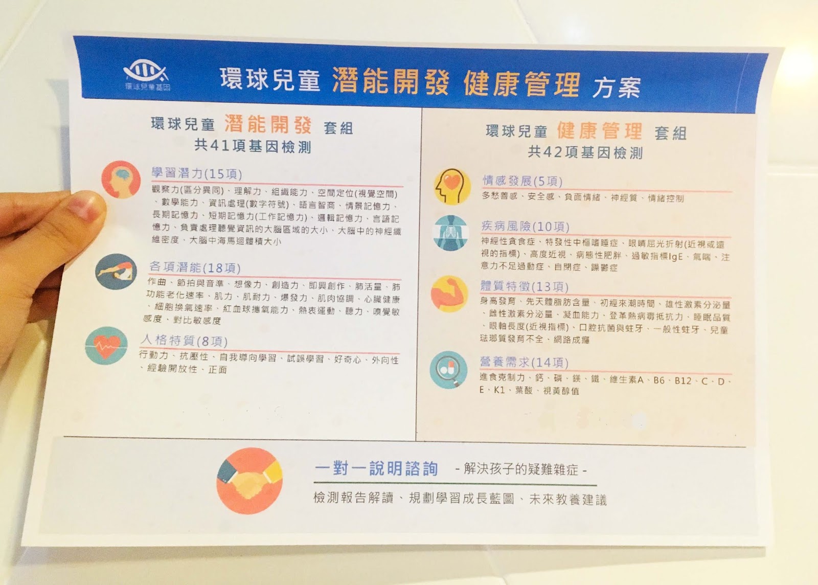 說實在,基因檢測並不便宜,但一生只需要測一次,可作為未來教育、醫療、運動訓練、生長發育的參考,如果能夠對孩子有更全面的了解,是蠻值得花的一筆預算。服務人員表示中心不定期都會辦促銷活動,如果有興趣都可以詢問,有機會有更優惠的方案喔!