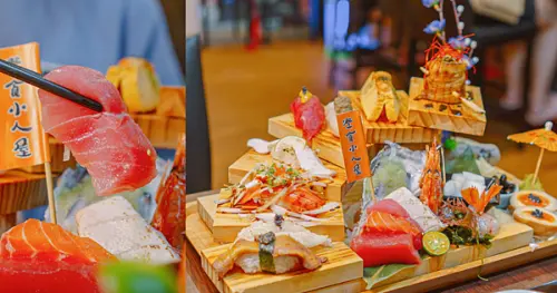 專賣平價的日本料理,主打各種豐盛美味的海鮮生魚片丼、熟丼飯、握壽司、生魚片、串燒等。
