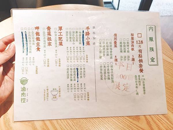 入座後,每一個人都拿一張內用限定菜單,不論是否同桌。