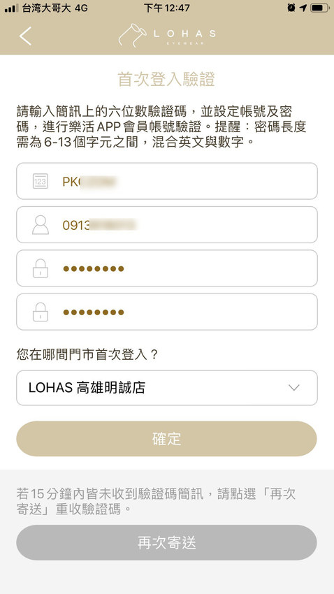 會員開通只要這次需要輸入資訊,之後只要隨時開啟 “LOHAS樂活眼鏡App“就可馬上使用