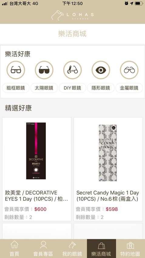 像我最常在公司附近使用”LOHAS樂活眼鏡App”