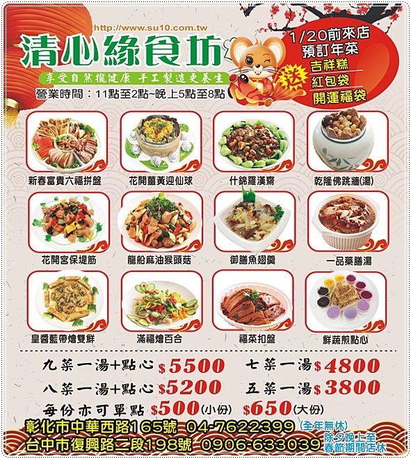 過年期間彰化清心緣無公休,台中店除夕晚上以及春節期間店休喔!