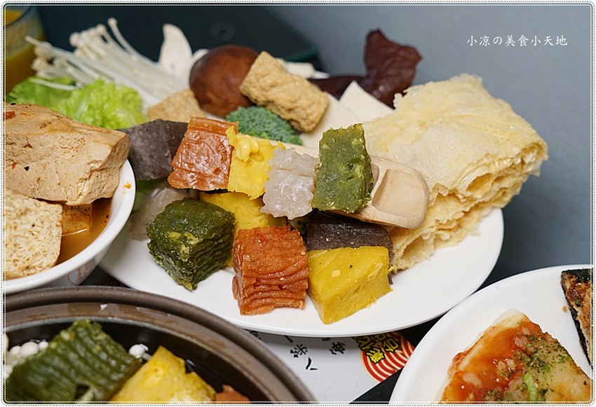 最特別的是闆娘加入手工QQ水晶火鍋,繽紛的五行養生色系,絕對顛覆素食既定的口感~