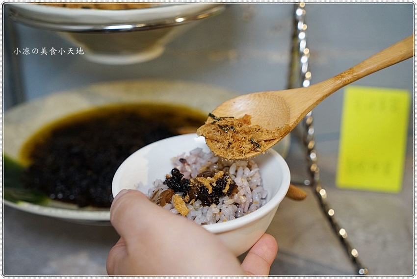 紫米糙飯比淋香椿素肉燥,鹹香好吃又涮嘴~