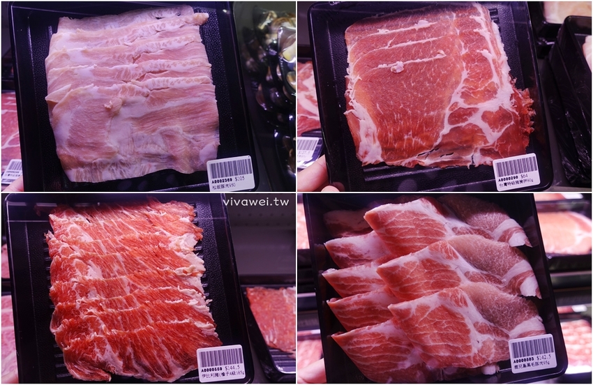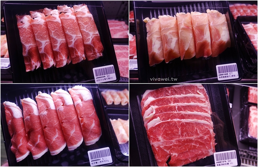 ▲肉控吃火鍋肯定不能少了肉盤!同樣的肉品所標示的價錢,會依重量而有所不同喔!「沐樺頂級肉品火鍋超市」的肉肉全面買二送一(以最低價者為免費),所以最少要挑個三盤才說得過去啊!