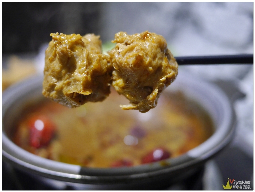 ▲大甲芋鮮肉丸好好吃,而且這個丸子一定要放到麻辣鍋湯底裡面煮才夠味!一口咬下可以吃到紮實的肉丸,還有芋頭的顆粒口感,超級好吃!