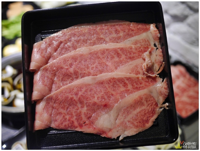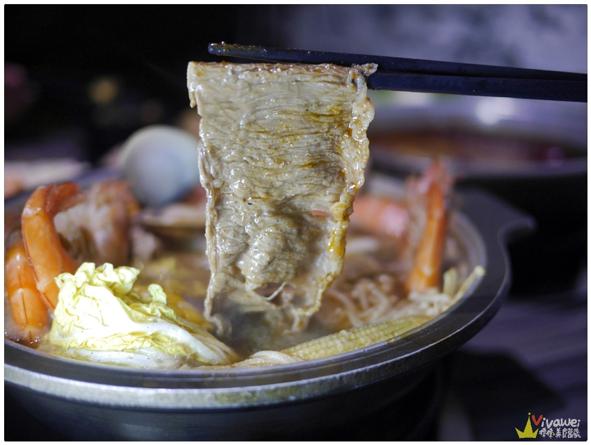 ▲美國PR霜降牛的油花分布均勻,油脂風味濃香~涮個八分熟就很軟嫩好吃!無論是想要涮壽喜鍋或是麻辣鍋都很適合,各有不同的風味,而且因為鍋底本身就很夠味,基本上不太需要沾醬就很好吃!