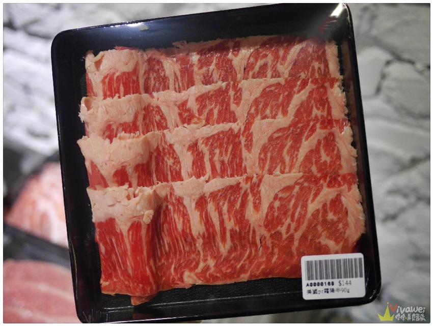 ▲美國PR霜降牛,90g的肉片價格為144元,因為我自己吃火鍋比較喜歡吃這種帶有油花的,所以在肉盤的挑選上,會選擇有肥又有瘦的肉品。