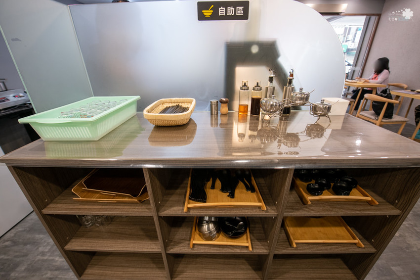 店內的餐具、調味醬料與酒水皆採自助式供應,每一樣物品皆分門別類的排列整齊,取用相當方便,看著也舒服。