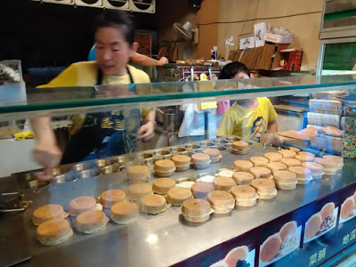 竹亮紅豆餅位於美德街上,如果從中國醫的美德大樓出來左轉,走幾十公尺就會到達,是這附近的熱門排隊美食,為何知道這間店也是跟院內的人打聽出來的。因此,下午跟心理師談完後約4點過半,就來到這裡跟著排隊人潮買起車輪餅(也有人叫紅豆餅)。不像一般紅豆餅攤只有一個台在做,他們家可是有兩個台在做還是應接不暇,在我前面還排有四五位,不過他們點的量也不多,同時雙台作業速度快,不到十分鐘就輪到我了,於是愛吃甜的我就點了紅豆、奶油、起司、巧克力口味這四種口味當晚餐(儘管不太健康)。