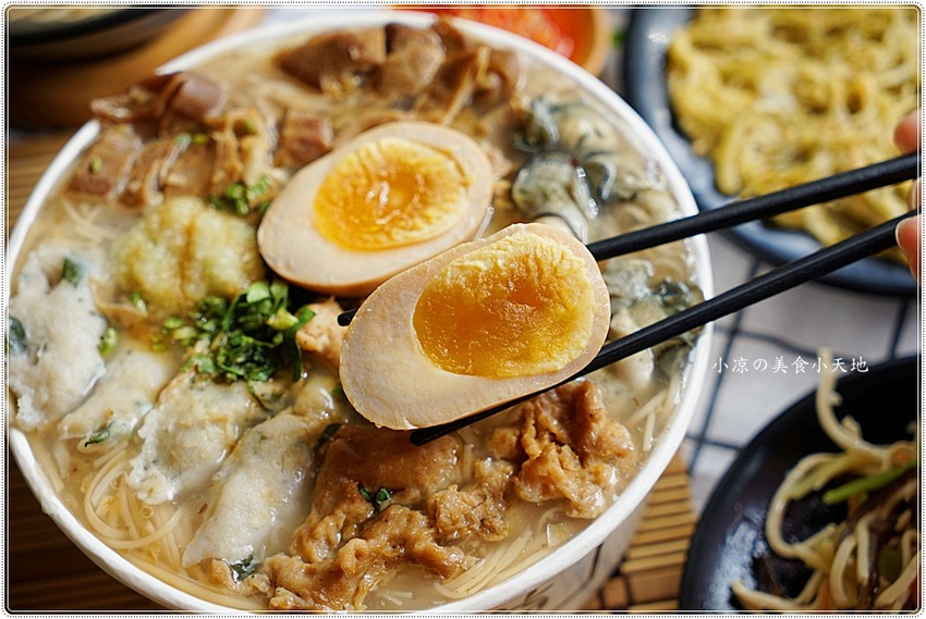 比較特別的是在賣麵線裡出現糖心蛋、手工仙草茶!