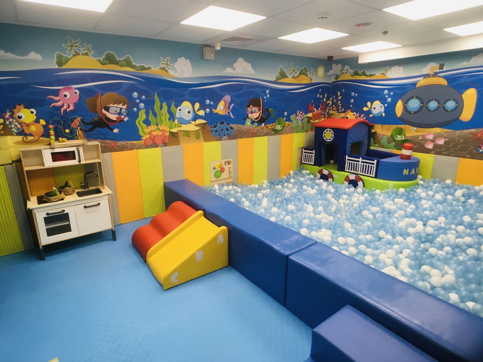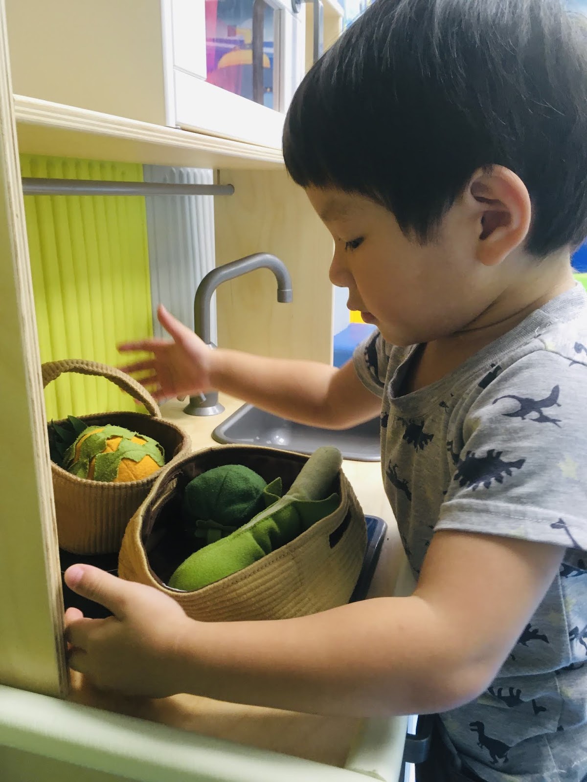 B2的室內遊戲區不大,但有球池小孩就能玩瘋了!海洋歷險主題的藍白球池,讓孩子潛身其中彷若在大海中游泳,兩旁牆面上有不同的手眼協調玩具可玩,小福寶也很愛在木質廚房煮飯,繪本牆上的童書挑得很好,還有立體書呢!在這裡陪玩相當愜意,不用擔心小孩在房間玩把旅館的東西弄壞了。