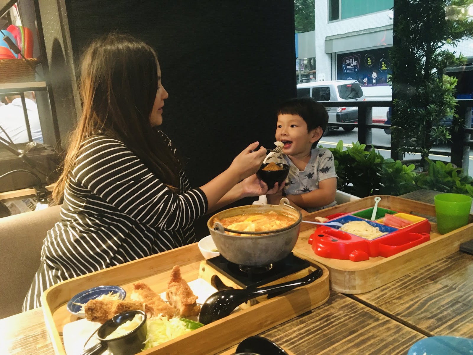 我們點了「開運昆布鍋(金黃魚排)」、「韓味起司泡菜鍋(激厚雞腿)」和「歡樂兒童餐」,上桌時看起來好豐盛! 原本以為在這麼漂亮的咖啡廳吃飯,用餐會是吃氣氛,沒想到CP值出乎意料的高。