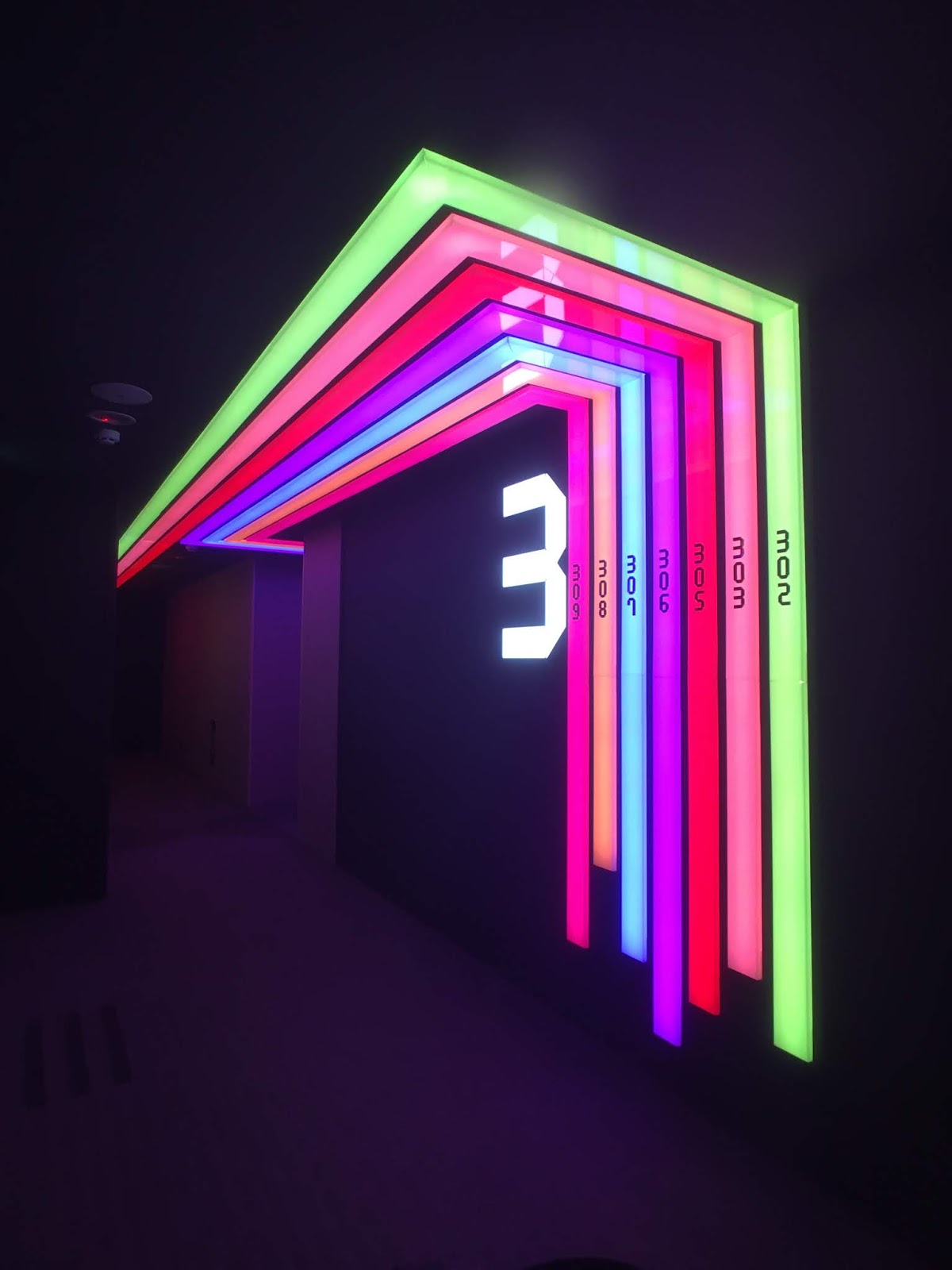 一進門,天花板絢麗的七彩燈光營造出奇幻的氛圍,令人目眩神迷,相當有設計感。
