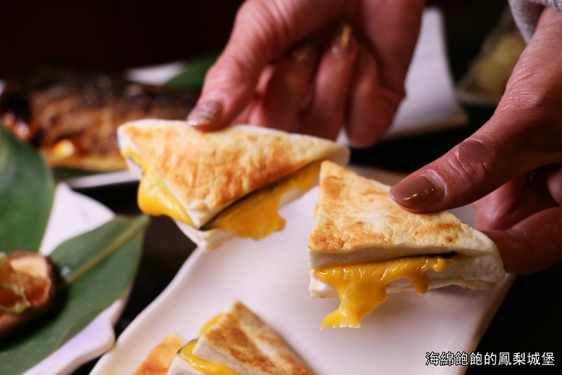 有點像是三明治,中間夾了半融的起士