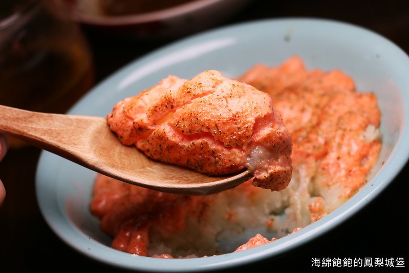 以鬆軟的洋芋鋪底,在放上十足的明太子醬
