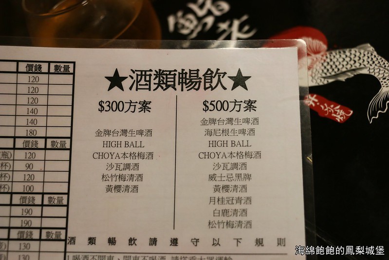 海綿跟朋友只喜歡喝梅酒,所以選了300元暢飲