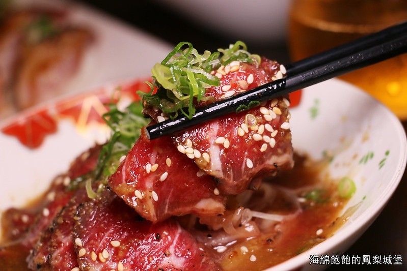 生牛肉口感頗嫩,搭配微酸的日式醬汁