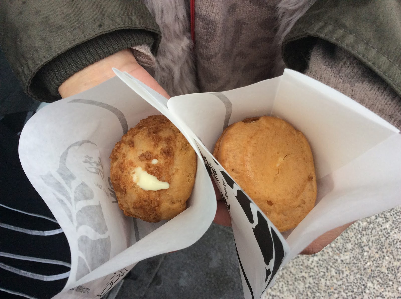 買了兩款波蘿奶油泡芙,到遊覽車上享用~~