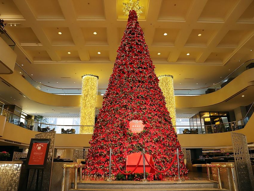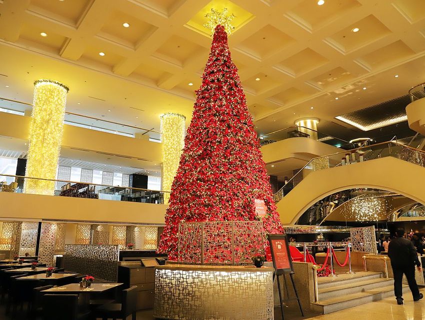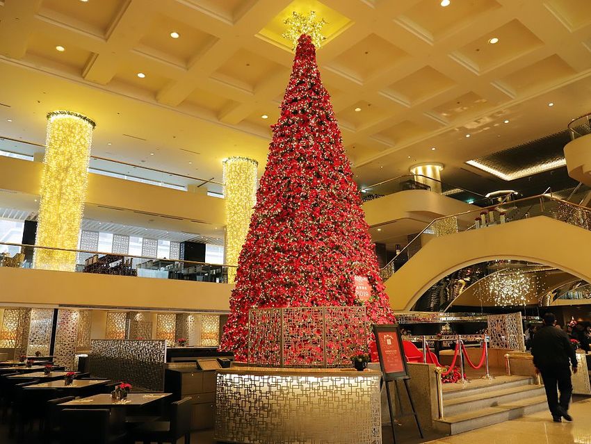 ▼走來中庭,直接從底層欣賞挑高三樓層的巨大聖誕樹,更加讓人驚呼連連~超美!