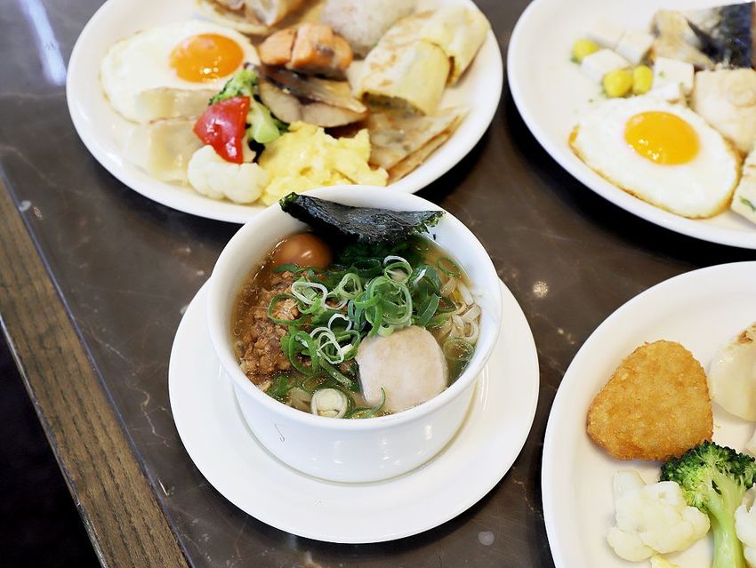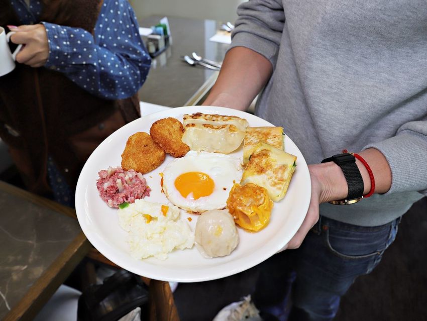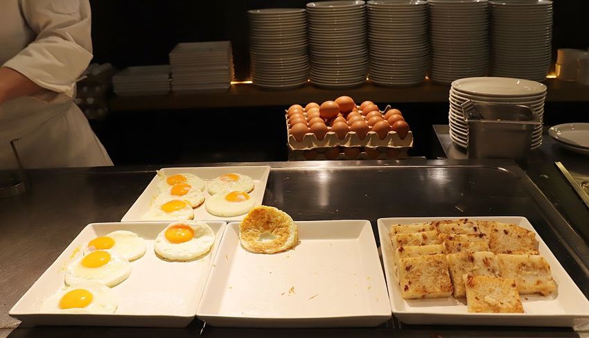 ▼《栢麗廳Brasserie》現場製作台灣傳統早餐:有荷包蛋、蘿蔔糕、煎餃、蛋餅、蔥油餅…很受國外旅客的歡迎~