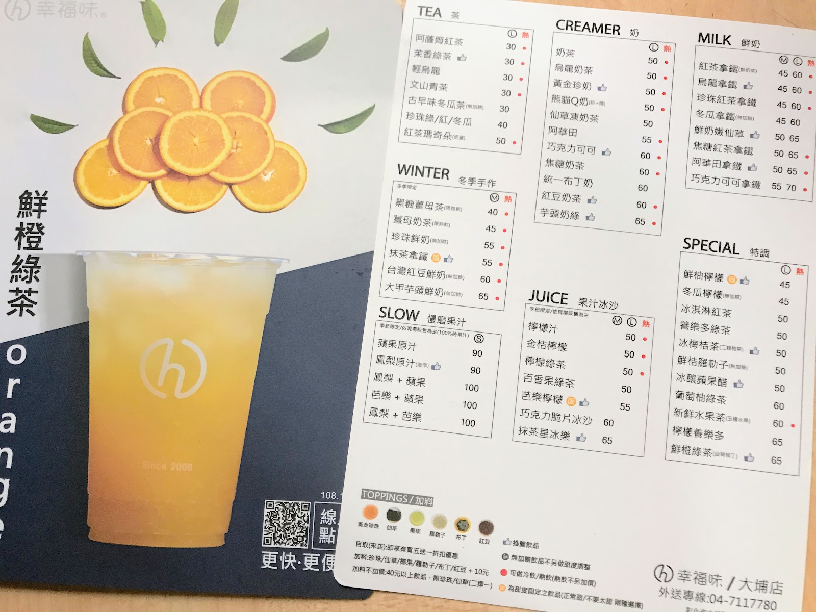 位於彰化八卦山與台灣美術館附近,熱鬧的大埔街上,其中有間深耕彰化在地且堅持天然新鮮的飲品專賣店-幸福味- 。