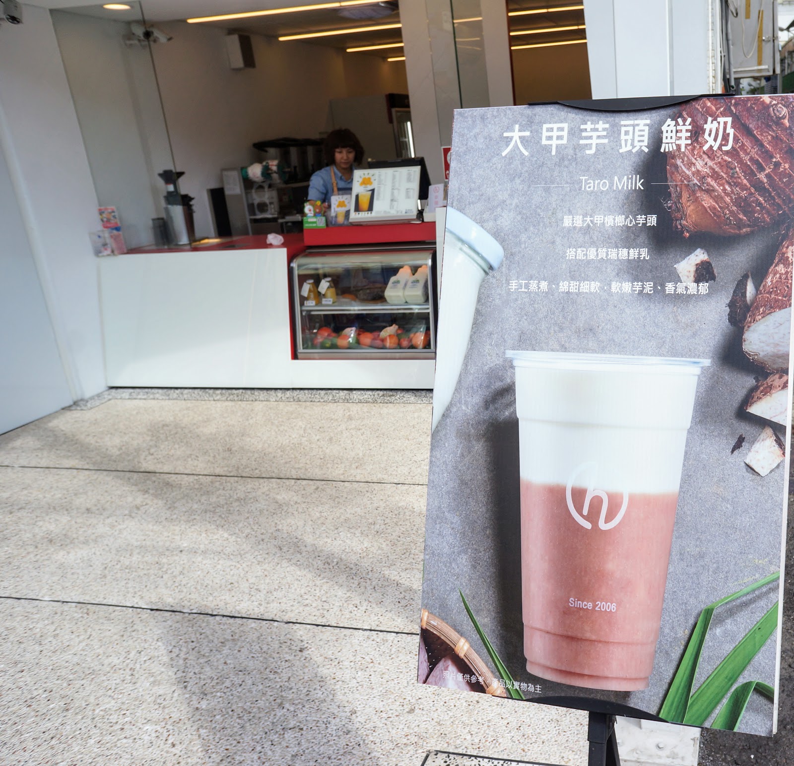台灣紅豆鮮奶是店家嚴選紅豆熬煮打成泥,製作時也每杯都以電子秤測重,並且以湯匙在杯中稍作壓的動作,讓每杯紅豆泥與鮮奶呈現完美的比例;另外就是選用來自大甲的芋頭熬煮打成泥與鮮奶混合,這兩種都是無另外再添加糖。飲用時可以稍加混合均勻,讓每一口都能喝到香綿滑口的紅豆泥與綿密順滑的芋頭泥,由於製作時都明確看得到店家使用食材,所以很放心讓孩子也一同品嚐這美好的幸福味!