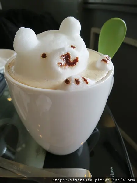 除了套餐的巧克力牛奶外,老闆娘還送了一杯鮮奶茶,上面一樣有一隻卡娜赫拉,為這兩隻我拍照拍了好久,不過他還是直挺挺的沒有消下去