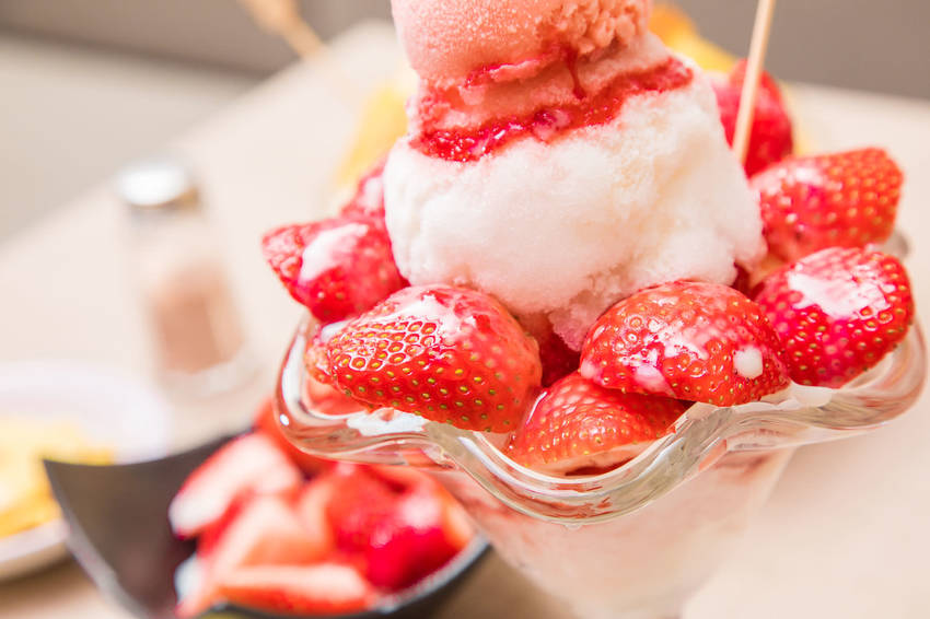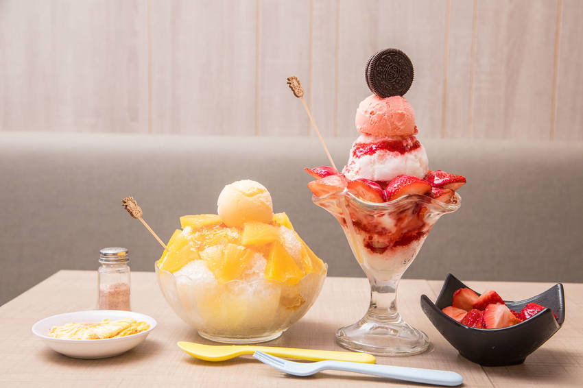 冬天就是要吃草莓啦,點了草莓雪淇冰&招牌鳳梨冰,冰底有三種選擇:雪淇冰、清涼冰(刨冰)、雪花冰,如果是店、水果冰建議點雪淇冰或清涼冰,比較能襯托出水果本身的味道