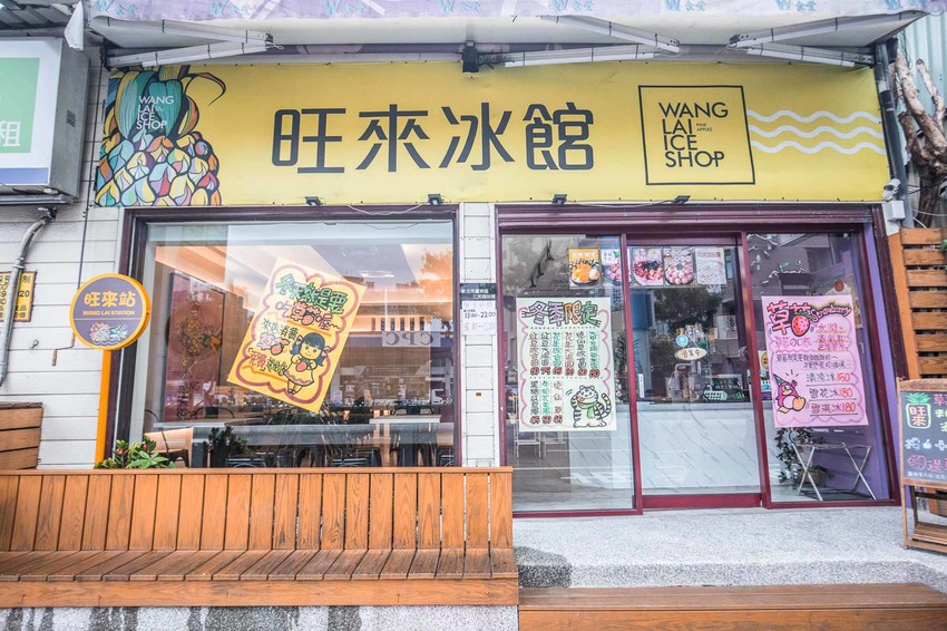 旺來冰館新址就位在捷運中和新蘆線三民高中站旁,從二號出口一出站走路不用一分鐘就到了!鮮黃色的招牌相當搶眼,門口還有一個類似公車停的候位區,站牌上還寫著旺來站,超可愛的!