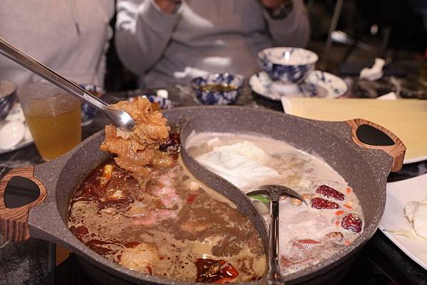 看看我們這個五顏六色的鍋!另外推薦他們的湯頭,湯頭味道都有溶進去料理裡面,真的是太香了~