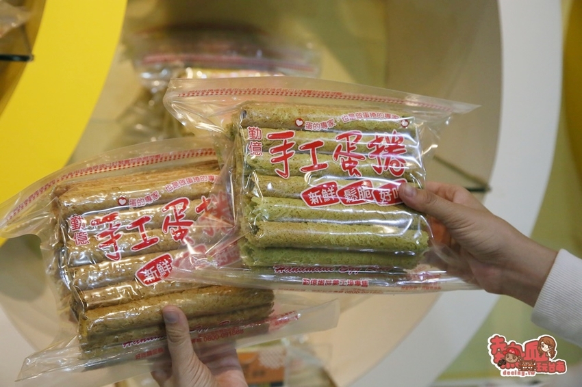 勤億雞蛋還有製作好吃的手工蛋捲,加入等量的雞蛋麵粉以機器熱壓後再捲起,畫面非常療癒啊~蛋捲口味有原味、抹茶、咖啡、肉鬆等口味都有,且不管是單包裝或禮盒均有販售,單包夾鏈袋方式的真空包設計,開封後假如沒吃完也好收納啦~