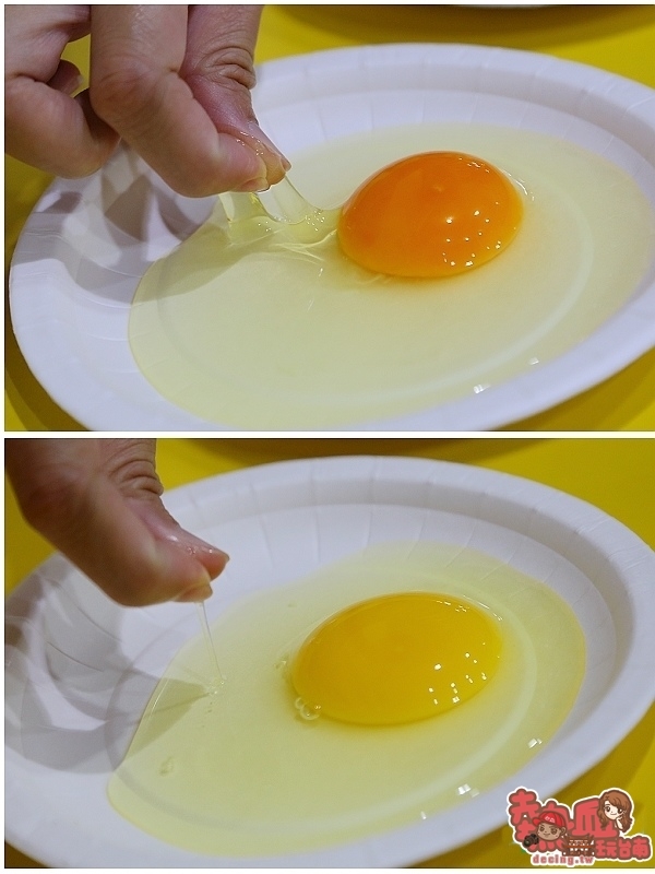 其實最讓我驚訝的是雞蛋整體色澤,正所謂沒比較沒傷害就是這個道理,勤億蛋品雞蛋顏色明顯較深黃,且色澤明亮,果然厲害!蛋白濃稠度輕輕一捏質感濃稠,反觀市售的雞蛋蛋白稀疏且不易抓取,真的是有點酷~