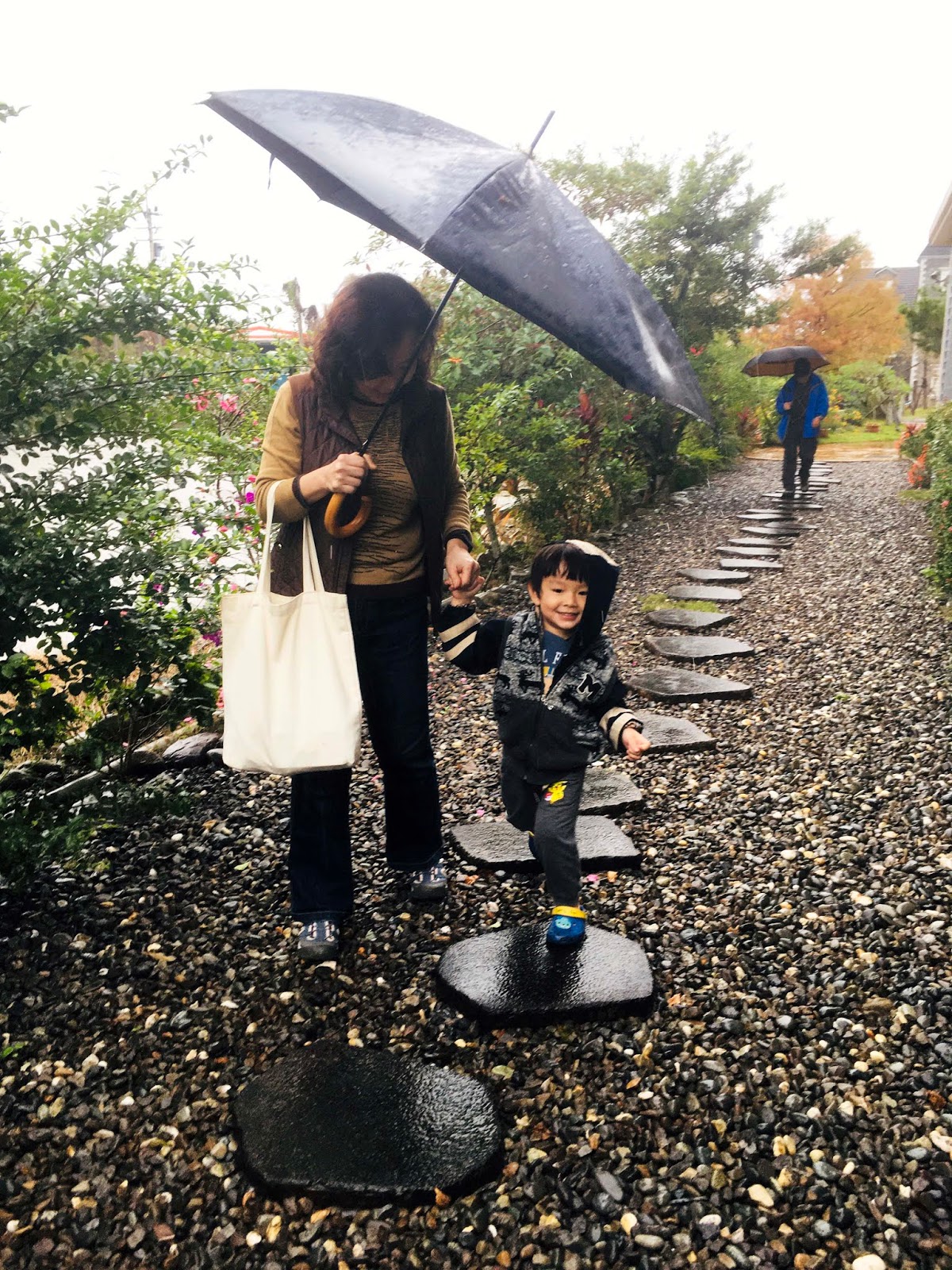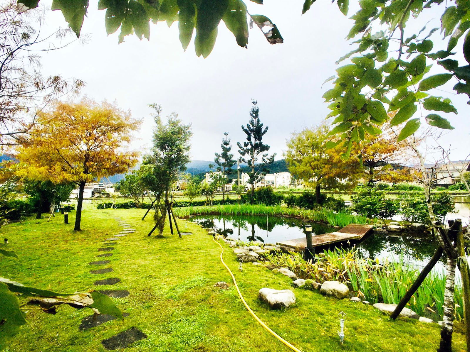我們來時雖然下著小雨,但小福寶的遊興不減,對落羽松和生態池周遭的小生物充滿好奇,撐著傘滿院子跑,親子的笑聲迴盪在青翠的草葉間,山水相映下的童趣畫面,令人洋溢著暖心的幸福感。