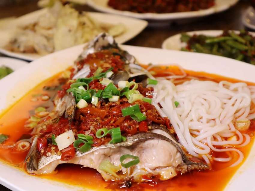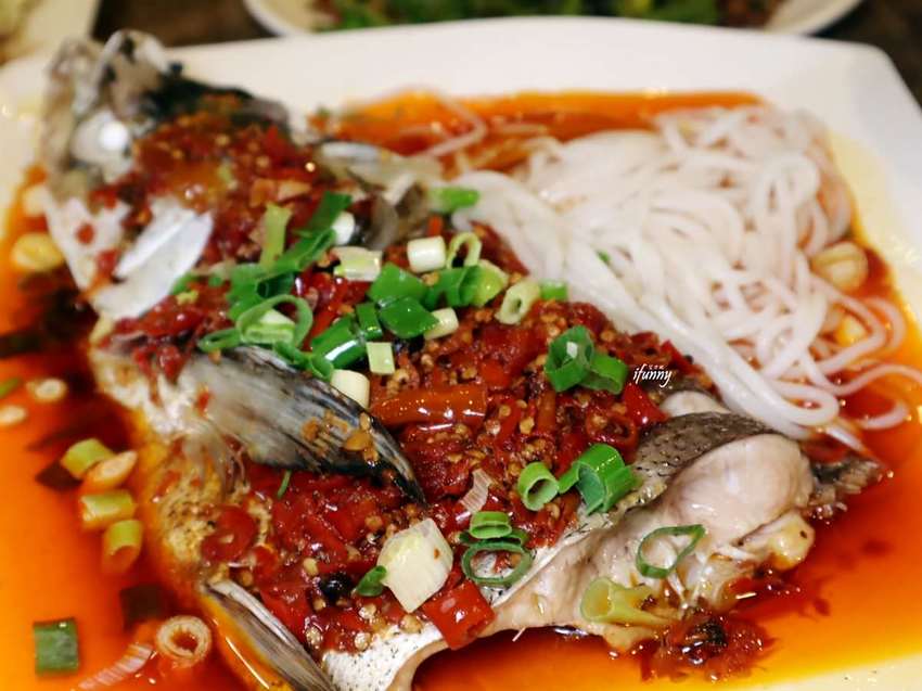 紅澄澄的辣椒片舖滿在整個魚頭上,看起來就覺得過癮啊!採用大尺寸的鱸魚,整顆魚頭肉相當地厚實,剁椒的醬汁也直接滲透到到每一吋魚肉魚皮之中,又麻又辣又香!整個魚頭豐富的膠原蛋白,咬上一口那辣香立馬竄出,額頭上當下就冒出汗珠,這就是我們追求的刺激辣感,也正是白飯小偷的最佳典範啊!