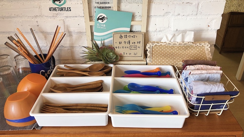 為了提倡環保準備了布手帕能擦拭,如果需要嬰兒餐具貼心的這邊也有提供,光都是使用環保餐具來講就先加分了