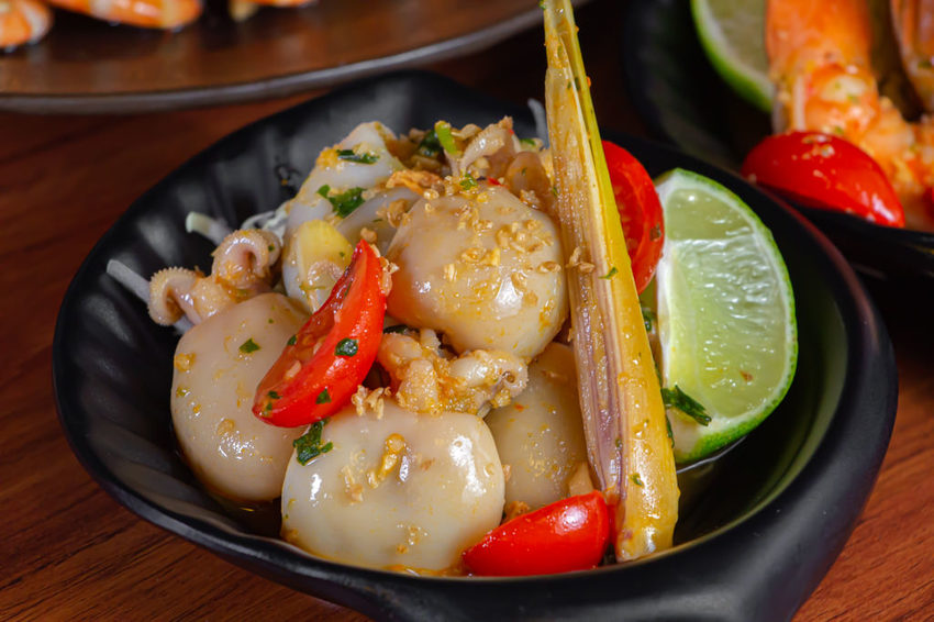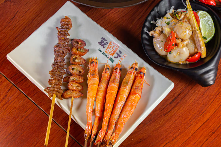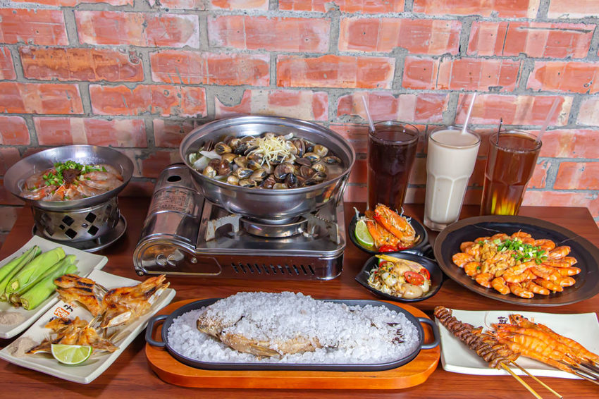 就醬子烤吧每間店的特色也不同,就像東山店的限定新品,泰式涼拌酸辣花枝、泰式涼拌酸辣蝦、奶油白醬北海道鮮牡蠣(2顆)、鹽焗北海道鮮牡蠣(5顆)、鹽焗鮮味台灣鯛、鹽焗手掌大蝦與生猛海龍大餐。