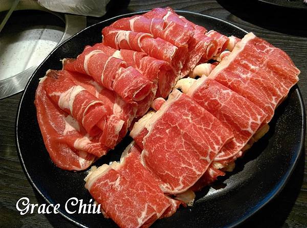 美國SRF極黑和牛/美國CAB安格斯霜降牛,其中我們比較偏好美國CAB安格斯霜降牛的口感,第二輪我們又加點了一次,其實一.二輪我們份數都是各點二份,不過二次的盛盤比例看起來有點懸殊,以菜單標示分量看來應該是第一輪多了一份黑和牛,第二輪少了一份霜降牛,哈~