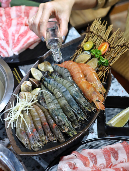 ▫️喜歡吃蝦或男友力MAX想幫你的吃貨女友剝蝦的,選這個就對啦。一共有草蝦、白蝦各6、紅蝦*2、還有小鮑魚*2、蛤蜊,全部都超新鮮,不愧是海線的火鍋店,蝦殼輕鬆脫落、鮑魚柔軟彈牙,海鮮品質沒話說,這天選的是爆爆蛤蜊鍋湯底,滿滿蛤蜊精華,蛤蜊控必點!