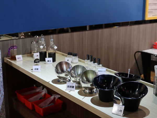 醬料區除了常見的幾種,比較特別的是寫著『海鮮香水』的透明瓶,原來裝的是米酒!老闆說海鮮噴上米酒可以去腥提味哦。
