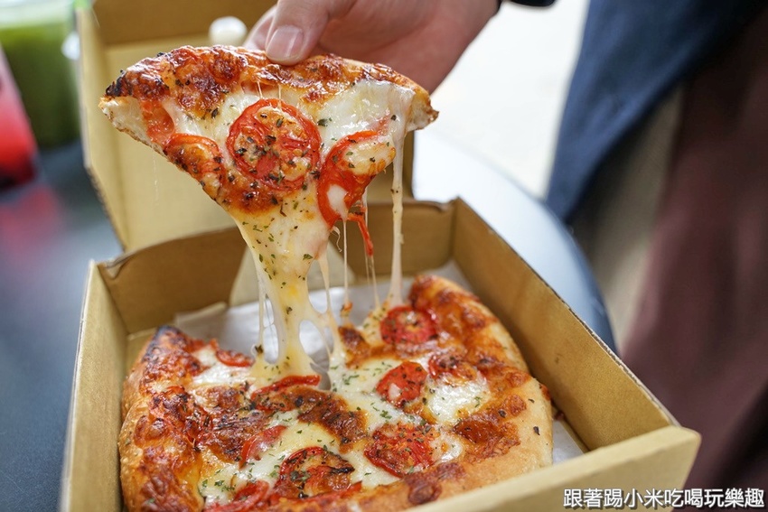 披薩的口感吃起來像是厚皮一點點的義式拿坡里披薩,熱熱的吃軟Q帶嚼勁,冷掉有像是歐式麵包的口感~濃郁鹹香的起司與蕃茄酸甜融合起來的口味小米非常喜愛^^