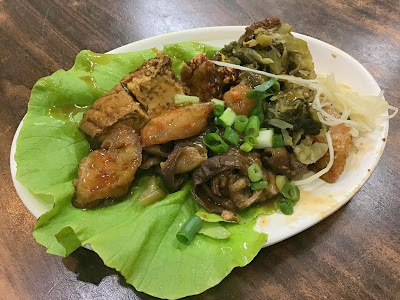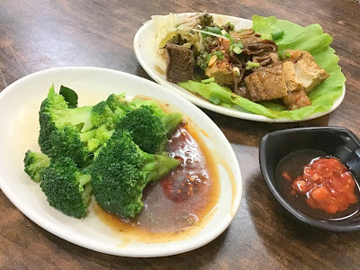 內壢後站[林記麵食館]位於莊敬路上,只要看見店門口停滿的摩托車,就知道是這家排隊名店啦!!騎樓還設了五張桌,即使颳風下雨,仍有客人願意。店家的滷味是我們每來必點的小菜,有豬耳朵、豬頭皮、肝連、大腸頭、豆干、豆皮、甜不辣、素雞、百頁....還可加點燙青菜,選擇多樣化。我和arica早有默契,進入館內就各司其職,丫頭負責找位子、拿餐具和醬料,我挑滷味和小菜;因為點餐動作若不快些,外帶和內用的人又多,得等很久哩!!每次來大都是滷味會先端上桌~~丫頭很愛吃青花椰菜,莖很嫩、花椰菜很飽滿,口感不錯,醬料也搭配得恰如其分。滷大腸頭是每來必吃,香Q有嚼感;雞捲也是屢試不爽的炸物;油豆腐鹹香味濃滷透透~~我點了乾麵,很清爽還附帶了一塊油豆腐~很喜歡店家用自製家常麵條,這是我特別喜愛的口感;選用蔬菜和一般兩種口味。綠豆芽爽脆的口感很加分,肉燥不那麼油膩,軟嫩適口,加點辣椒醬更爽口。丫頭點的榨菜肉絲麵,也是選兩種麵條,榨菜脆口鹹度恰到好處,湯頭有大骨熬出的滋味,香濃好喝。午餐母女倆都吃得精飽,[林記麵食館]已成為我們固定用餐的最佳選項。文章標籤林記麵食館內壢美食全站熱搜創作者介紹松葉牡丹松葉牡丹